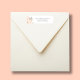 This design features a simple, basic, stylish return address with minimalist, watercolor, peach, blush pink, floral, flowers design with greenery and foliage.
