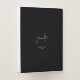 Simple personalized black pocket folder. Casual name text with traditional lower case plain text title with date. Black with white text.