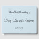 This simple and elegant wedding or marriage reception guestbook features the message "We celebrate the wedding of", the customized names of the married couple and the wedding reception date. It could be used to record happy wishes for the newly married couple.