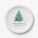 Simple personalized tree Christmas plate. Easy to change the text. Pretty watercolor design for the holiday season.