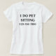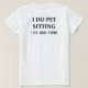 Simple pet sitter tshirts with the words I do pet sitting in bold letters and contact number that stands out so it's easy to remember with the design printed on the front and back. Designed as a work shirt for someone who takes care of pets that can be worn by you staff or your family and friends to get your name out there on a budget.