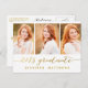 Trendy modern photo postcard inviting your family and friends to your daughter's graduation party. Simple Script Photo Collage | Graduation Party Invitation for 2015. Design by Elke Clarke © Visit our shop www.zazzle.com/monogramgallery* for more designs and styles. A simple gold foil typography handwritten script font text overlay (printed photo effect) with the words "2015 Graduate" with a three photo collage design. Replace sample photos with your own. White and gold colors. Other styles and colors available.