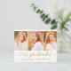 Trendy modern photo postcard inviting your family and friends to your daughter's graduation party. Simple Script Photo Collage | Graduation Party Invitation for 2015. Design by Elke Clarke © Visit our shop www.zazzle.com/monogramgallery* for more designs and styles. A simple gold foil typography handwritten script font text overlay (printed photo effect) with the words "2015 Graduate" with a three photo collage design. Replace sample photos with your own. White and gold colors. Other styles and colors available.