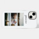 Modern phone case featuring a simple and minimal black and white design with a photo collage of four of your favorite pictures along with your name in an elegant script.
