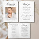 This modern minimalist 4-page funeral memorial order of service program is thoughtfully designed to honor a cherished life with simplicity and grace. Featuring a clean layout with a customizable photo and fully editable text, it provides space for the order of service, obituary, prayers, and meaningful messages.