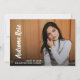 Modern graduation announcement card with multiple photos. The front has the graduate's name in bold white script vertically along the left side with the class year and school name at the bottom, over your favorite photo. The backside has a collage with three photos over a white background. The background may be changed to any color you wish. This announcement card is great for a girl high school graduate.