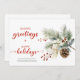 The design showcases simple yet beautiful pinecone branches and berries, with a central greeting in elegant script.