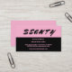 A simple, but eye-catching design of pink and black color blocks makes the perfect business card for anyone in the beauty industry. The back is in the same pink as the front.