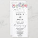 Introducing our elegant and timeless wedding program featuring a stunning row of pink, purple and blue flowers with greenery across the top front. This design is perfect for those looking for something simple, yet sophisticated, with a touch of boho and botanical style.