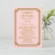 These wedding programs feature a pink and gold color palette, a geometric frame, and other stylistic details all inspired by Art Deco and the roaring twenties. You can customize the sample text fields to your liking.