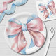 Simple Pink Blue Bow Gender Reveal Paper Plates