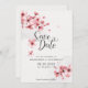This Save The Date card is part of the "Pink cherry blossom Wedding" collection, with coordinating items to create a unique wedding suite.