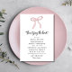 Having your Simple Pink Coquette Bow Bridal Shower Invitation match the theme of your party is a great detail that your guests will appreciate. The thoughtfulness of a consistent party theme is often appreciated and can show your guests that you can host a cohesive event.