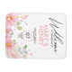 Elegant bridal shower event party floral rose blossom magnet which are perfect for a orange rose blush pink party. For bride party event. A chic white background. Decorated with a rose and magnolia flowers. Blush pink floral, rose flower and green watercolored eucalyptus leaves, sprigs, greenery and a faux gold sprig. Personalize and add the name of the bride to be and party details. Black and pink colored letters. Stylish and simple bridal shower invitation.