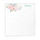This pretty note pad features a spray of beautiful pink flowers and moss green botanicals in the upper left corner. On the right you personalize it with your name.