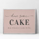 Simple Pink Have Some Cake Wedding Sign - in beautiful handwriting script and your personalized text. A stylish yet simple design in any background color you choose. Just click the edit using design tool link, shown under the text personalization area on the right, and choose your custom color background. This sign poster template makes it fast and easy to create stunning additions to your wedding decor. Signs can be enlarged, there are many sizes to choose from, as well as options for custom framing and matting.