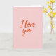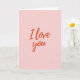 This card shows a blush pink background with the words “I Love You” placed right in the center. The letters are coral-red and shiny, so they stand out clearly against the soft pink. The writing looks like smooth, flowing cursive, with a slightly raised look that gives it a bit of depth. There aren’t any extra pictures or objects, which keeps your attention on the message. The simple layout makes the card feel calm and intimate, like saying something important without overexplaining. It’s meaningful because it gives you an easy way to say how you feel, whether it’s for a partner or someone you care about 🥰. The warm colors and centered text make it feel direct, sincere, and full of love ❤️. Hope it helps you share your Valentine’s Day sentiments.