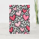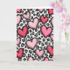 This greeting card features a repeating pattern of pink hearts layered over a black-and-gray leopard print on a white background. The hearts come in different sizes and shades, from soft blush to deep fuchsia, and each one has a thick black outline. A few hearts overlap and tilt in different directions, which makes the design feel lively and full of energy. Small white highlights on the hearts give them a slightly shiny, rounded look, like they’re catching the light. The leopard spots underneath add a fun contrast that keeps the card from feeling too sweet, balancing romance with a bit of attitude ❤️. There isn’t any text on the front, so the pattern does all the talking and leaves room for your own words inside. It feels meaningful to give because it says “I care about you” in a confident, modern way without needing a long message 🥰.