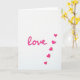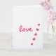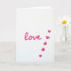 This card shows a bright white background with the word “love” in fuchsia pink, written in smooth, flowing cursive-style lettering near the left-center. The letters look like a cutout sitting slightly above the surface, with a faint shadow that adds a gentle bit of depth. Four small pink hearts appear on the right side, spaced out as they drift diagonally from the upper right down toward the lower right corner. The hearts are simple and neat, and the open space around them makes everything feel calm and focused. It feels meaningful because it says what you want to say without adding extra clutter, which can be perfect when your feelings are straightforward ❤️. The strong contrast of pink on white gives it a warm, romantic look that still feels quiet and sincere 🥰. It’s an easy card to give to a partner or a close friend when you want your Valentine’s Day feelings to come through clearly, and it’s a sweet way to share Valentine’s Day sentiments.