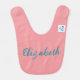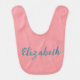 Simple Pink & Medium Blue Cursive Name Script Text Baby Bib