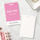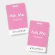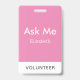 Simple pink personalized "Ask Me" badge for volunteers, teachers, guides, event organizers for special events, such as weddings, craft fairs, home & garden shows, charitable events, business and corporate functions. “Ask Me” and Name are an ivory color. “Volunteer” title is dark gray.