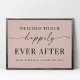Simple Pink Welcome To Our Happily Ever After Sign - in beautiful handwriting script and your personalized text. A stylish yet simple design in any background color you choose. Just click the edit using design tool link, shown under the text personalization area on the right, and choose your custom color background. This sign poster template makes it fast and easy to create stunning additions to your wedding decor. Signs can be enlarged, there are many sizes to choose from, as well as options for custom framing and matting.