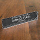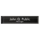 A simple plain desk name plate in black with a thin white border/frame around it. The border or frame can be customized in color by editing the background color of the desk name plate. Font type, color and size can also be customized.