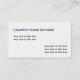 Plain simple business cards template in a general design that includes space for your company or name, contact and business information, and white background color you can change. Organize the text fields your own way and make this your own. Includes two side printing.