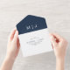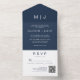 Simple Plain Navy Blue Monogram QR Code Wedding All in One Invitation