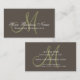 Simple, plain, taupe business card with green monogram is a perfect template to customize for any professional business. Use the monogram feature to create a business logo with the initial of your company name, in the color of your choice, and then adding the company name in white script font on top. Add your business address, email, phone number and website and any additional information on the back of the card using the template fields OR select "customize it" for additional editing options. Elke Clarke ©2009. For other background colors please contact store owner.
