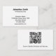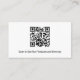 This plain white generic design business card has black text that you can edit to show the details about you and your business. Front: There are lines for your name, professional job title, business name, address, phone number, and website. Back: There's a QR code placeholder image and text you can edit to show your personalized message. (Remember to enter your Website URL for your QR code to work correctly.) All text on both sides can be edited or deleted.