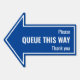Simple PLEASE QUEUE THIS WAY Custom Blue White Sign