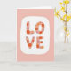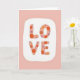 This greeting card features a pale pink background that feels calm and cozy. In the middle, there’s a soft-edged white shape like a rounded rectangle that frames the main message. The word “LOVE” sits centered inside it in big, rounded capital letters, and it’s easy to read at a glance. Each letter is filled with small polka dots in warm orange, soft peach, and muted lavender on a rosy base, giving the word a gentle, textured look. The letters don’t use sharp corners, so the whole design feels tender and welcoming. With no characters or busy scene, the focus stays on the message, which makes it feel direct and sincere ❤️. It’s a meaningful card to give when you want to say “I care about you” in a simple way, whether it’s for a partner or a close friend 🥰. Hope it helps you share your Valentine’s Day sentiments.