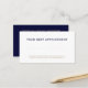 Ensure your clients never miss a meeting with our simple professional appointment reminder cards. Featuring a timeless navy blue and gold color scheme, this customizable card is perfect for attorneys, law firms, estate planners, financial advisors, and any professional service firm. The minimalist design provides ample space for essential details, while the classic typography exudes sophistication and trust. Whether you’re in law, finance, or other professional services, this versatile card can be tailored to suit your brand's unique identity. Stand out with a design that reflects your commitment to excellence and personalized service.