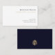 Make a lasting impression with our Simple Professional CPA Business Cards featuring classic typography on a clean white background. The back features a striking gold geometric emblem logo on a sleek navy blue background. Perfect for any business professional looking to make a lasting impression.