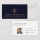 Present yourself professionally with these navy blue business cards showcasing a brushed gold justice scale logo and photo, tailored for legal experts who aim for a lasting impression in the field of law.