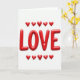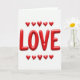 This card shows the word “LOVE” in big, rounded 3D letters that look like shiny red balloons. The letters sit centered on a plain white background, with soft light creating gentle highlights and shadows across the curved surfaces. Above the word, a row of five small red hearts is spaced evenly, and another matching row sits below it. Everything is a rich red, and the glossy finish makes the hearts and letters feel bright and full of warmth. The text “LOVE” appears in thick, smooth lettering, and it’s the main focus right in the middle of the card. It’s a simple design, but it says a lot, making it easy to give to a partner, a close friend, or anyone you care about 🥰❤️. It feels meaningful because it doesn’t over-explain—just a clear reminder that love is there. Hope it helps you share your Valentine’s Day feelings in a kind, honest way.