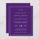 Simple budget wedding invitation featuring a modern yet elegant design with your two letter monogram at the top, a bold date layout and your details surrounded by a thin border. All design elements are in white over a purple background and may be changed in the design editing tool. A chic and stylish design that is great for a minimalist couple.