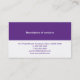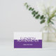 Simple and modern is the look on this business card. A business or personal name is dominant on the front of the card with the main contact information, either a phone number or website, knocking out of the purple panel below. Add a description of services on the reverse at the top with all contact information printing below in violet. Available in alternate colors.