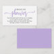 Cute bridal shower enclosure card featuring a simple and minimal design in purple and black with "shower" in purple script and a message asking your guests to leave their gift unwrapped. A display shower is the perfect way to celebrate in an eco-friendly way while allowing more time to spend with guests rather than opening gifts.