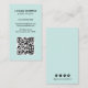 Modern vertical business card featuring a simple and minimalist style with your QR Code on the front and social media icons on the back. All design elements are in black over a turquoise background. A plain and minimal design that can be customized for any business professional.