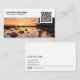 A simple but modern photographer business card featuring a QR code. The front shows a photograph of your choice, your name or business name and your profession. The back of this template includes your contact details, including your social media handle. This simple QR code design is ideal for photographers, photography businesses or videographers. Every element of this modern business card design can be personalized to suit any business.