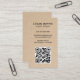 Modern vertical business card featuring a simple and minimalist style with your QR Code on the front and social media icons on the back. All design elements are in black over a brown paper background. A plain and minimal design that can be customized for any business professional.
