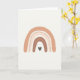This greeting card shows a simple arched rainbow centered on an off-white background, with three soft earth-tone bands. The outer band is a gentle terracotta, the middle is blush pink, and the inner band is a deeper warm brown. Each band is edged with small dashed lines, giving it the look of careful stitching without any busy details. Under the brown center, there’s a small dark gray heart that feels quiet and sincere. There’s no text on the front, which makes the little heart and the calm colors do all the talking. It feels meaningful to give because it says “I care about you” in a steady, comforting way, whether for romance or close friendship 🥰❤️. Share it to help someone feel loved and remembered on Valentine’s Day.