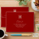All text is fully customizable. The red background layer can be deleted and be changed to any color of your choice. You can easily edit, move things around or add more text / info / details and/or photos to this product. You can also add colors or design elements to the font, back and inside of this custom envelope.