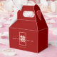 Minimalist single lined ivory cream white rectangle double happiness on a red background double-sided chinese wedding party favor box.