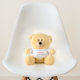 This cute kids teddy bear wears a t-shirt personalized with a lovely red, black and white script with the name and the date- in a minimal, simple handwritten font. The text is customizable, you can change it.