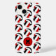 This fun volleyball themed iPhone case features a simple pattern of volleyballs that have red, black & white panels on a customizable white background - customize with the athlete's monogram - by katz_d_zynes