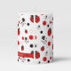 Simple and elegant pattern featuring ladybugs clipart in red, black and white color with circles and dots in red and black and a personalized name label.