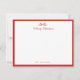 Personalized Simple and elegant flat note card with red bow and border.